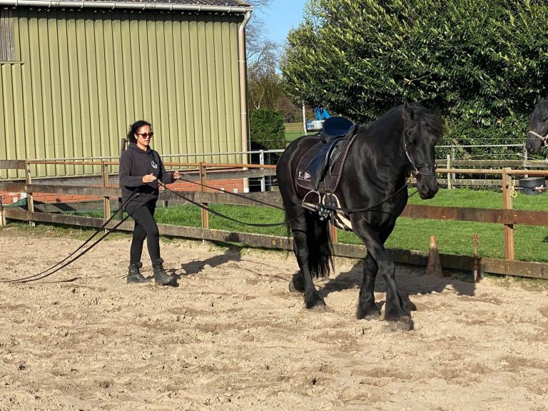 • werken met lange lijnen, waarbij het paard leert sturen, buigen en zijn lichaam beter gebruiken